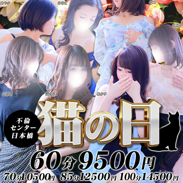 不倫センター日本橋店では激安で人妻や熟女と濃厚なプレイが味わえますが、やんちゃな子猫グループのお店なので安心感も大きいはずです!街で見かける普通の人妻からスレンダーで一見するとモデルのような奥様まで多種多様、それぞれのお客様に応じたご利用方法があります!在籍している女性の数は優に150人を超えていて、礼儀正しく献身的で綺麗な奥様が多いです。激安価格でクオリティの高いプレイができるので、コストパフォーマンスの良さはまさに折り紙付きだと言えます。基本価格は60分1万円~ですが、イベントをご利用いただくことで例えば70分8,500円などの低価格で遊んでいただけることも!土日・祝限定イベント、ご新規様限定イベント、シルバー割のような要注目のイベントもたくさん設定しています。そのうえ入会金やパネル指名料は無料で、基本オプションの他に、有料オプションも約20種類ご用意しています。不倫に憧れている…というお客様は、やんちゃな子猫グループの当店をご利用ください!